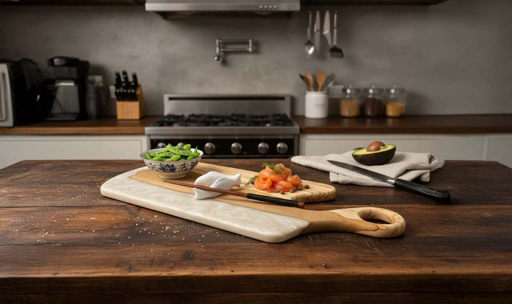 All crafted from Walnut, Maple, Cherry, Olive, and Burl, combined with food-safe epoxy resin for lasting durability and artful style.